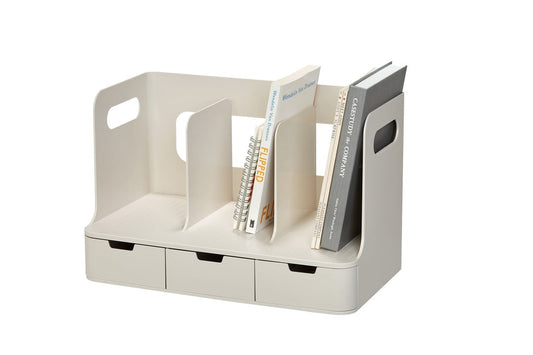 Sysmax | Olio Book Rack with 3 Compartments | 3 Drawers | Organiser| Beige