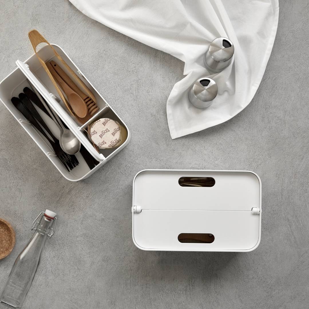 Litem | Portable |Stackable |Organizer with Lid and Adjustable Compartments | White Transparent